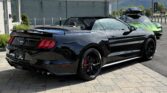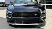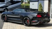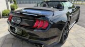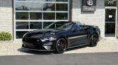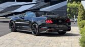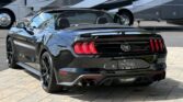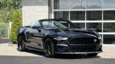 La Mustang GT California Special (option 54C) se distingue par un look extérieur exclusif : jantes en aluminium de 19 pouces Mach-Face noirs brillants, calandre unique à logo poney tri-bar décalé, splitter avant issu du Performance Pack GT, spoiler arrière type pedestal, liserés latéraux, faux side scoops et lettrage California Special sur le couvercle de coffre. On retrouve également un badge GT/CS sur la barre de strut, une fausse trappe à essence à l’arrière, un diffuseur redessiné, des phares full LED et une quadruple sortie d’échappement.
