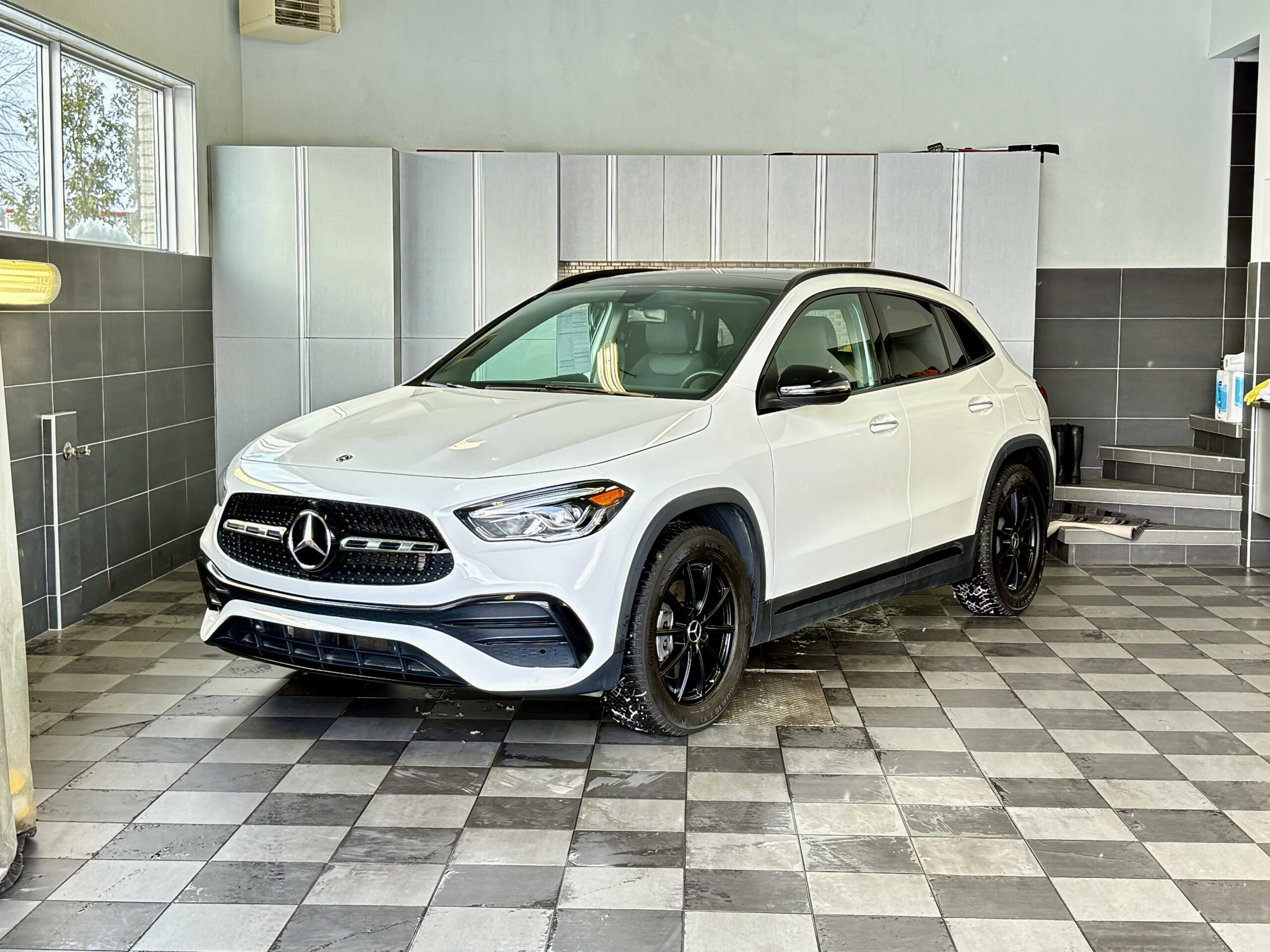 Superbe Mercedes-Benz GLA 250 4MATIC 2023, finition AMG Line, couleur Blanc Polaire, intérieur noir/anthracite. Véhicule canadien, assemblé en Allemagne, combinant sportivité, confort et technologie dans un format compact et polyvalent.